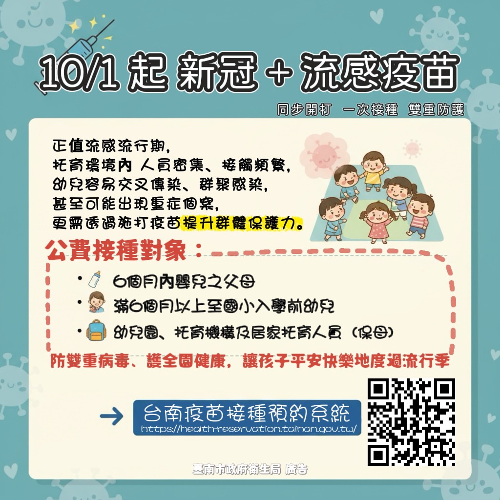 一、入秋氣溫變化大,為防範呼吸道疾病傳播,請各園所配合加強宣導並儘早完成疫苗接種。
