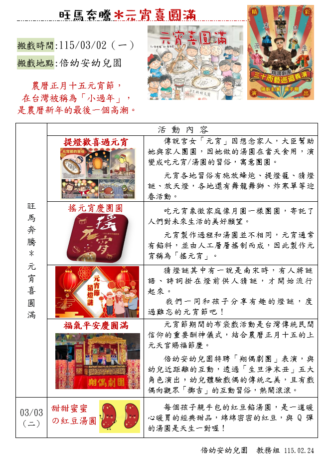 114學年度第二學期 旺馬奔騰*元宵喜圓滿
