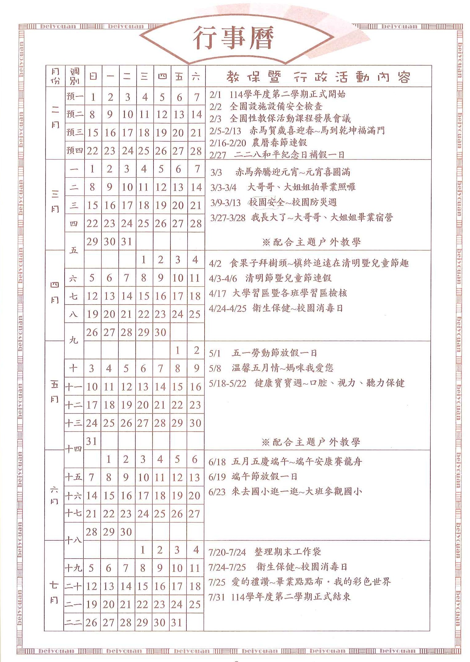 當年度行事曆